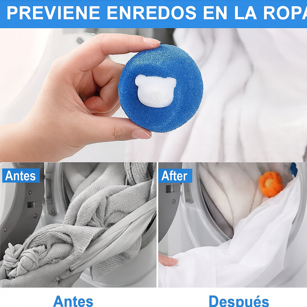🧺 ¡BOLA QUITAPELUSAS REUTILIZABLE PARA LAVADORA Y SECADORA – Ropa impecable sin pelos ni pelusas!